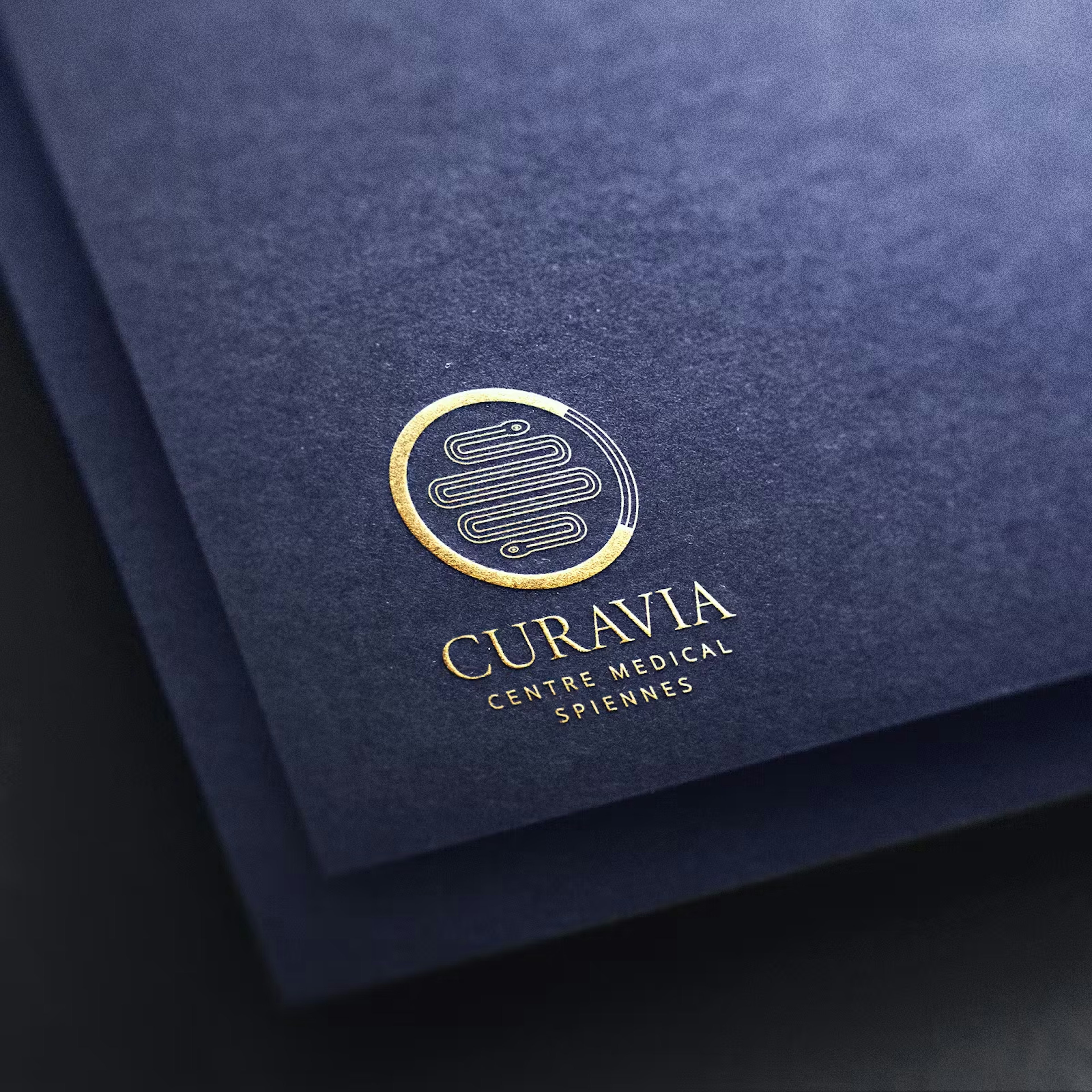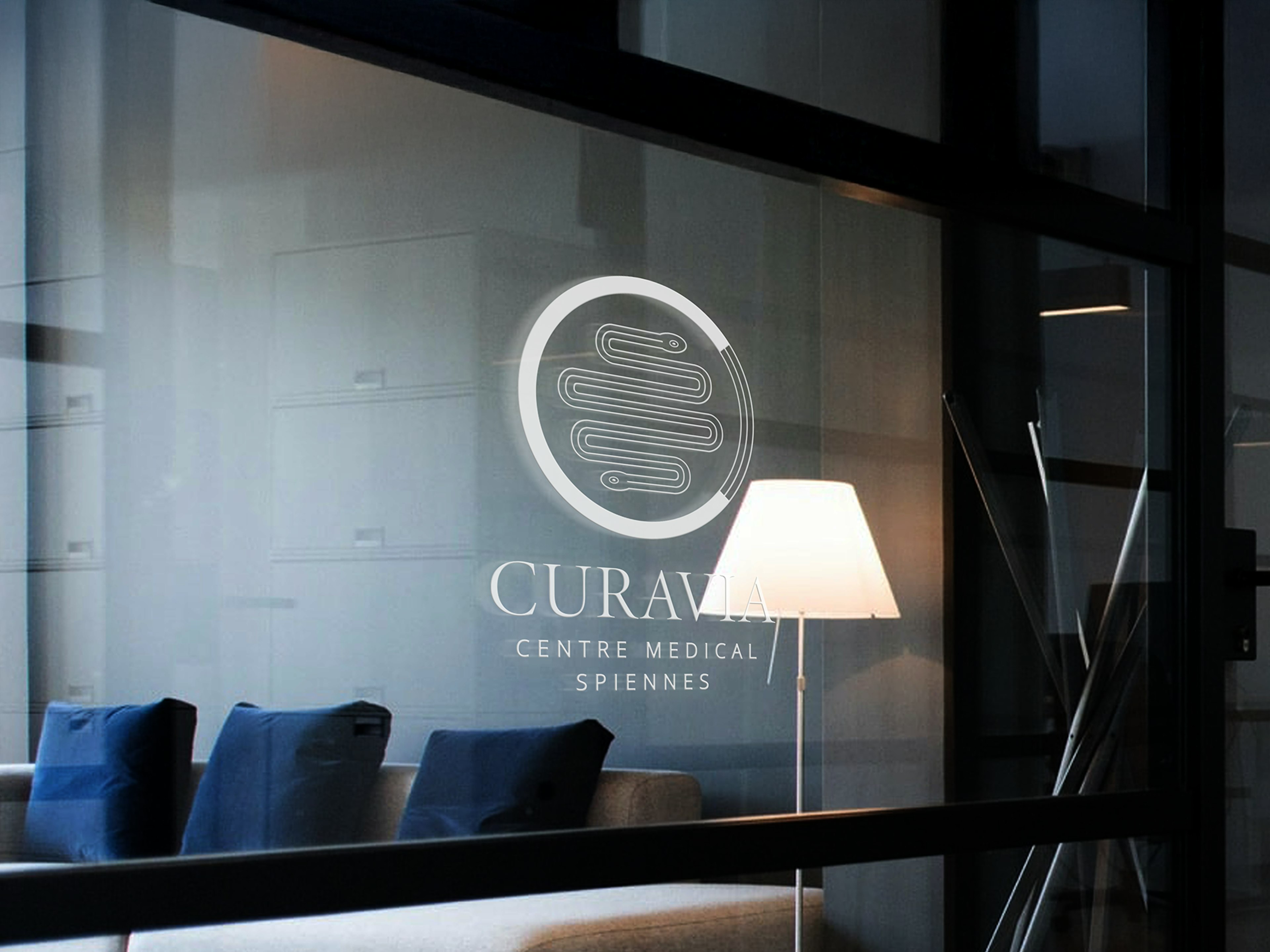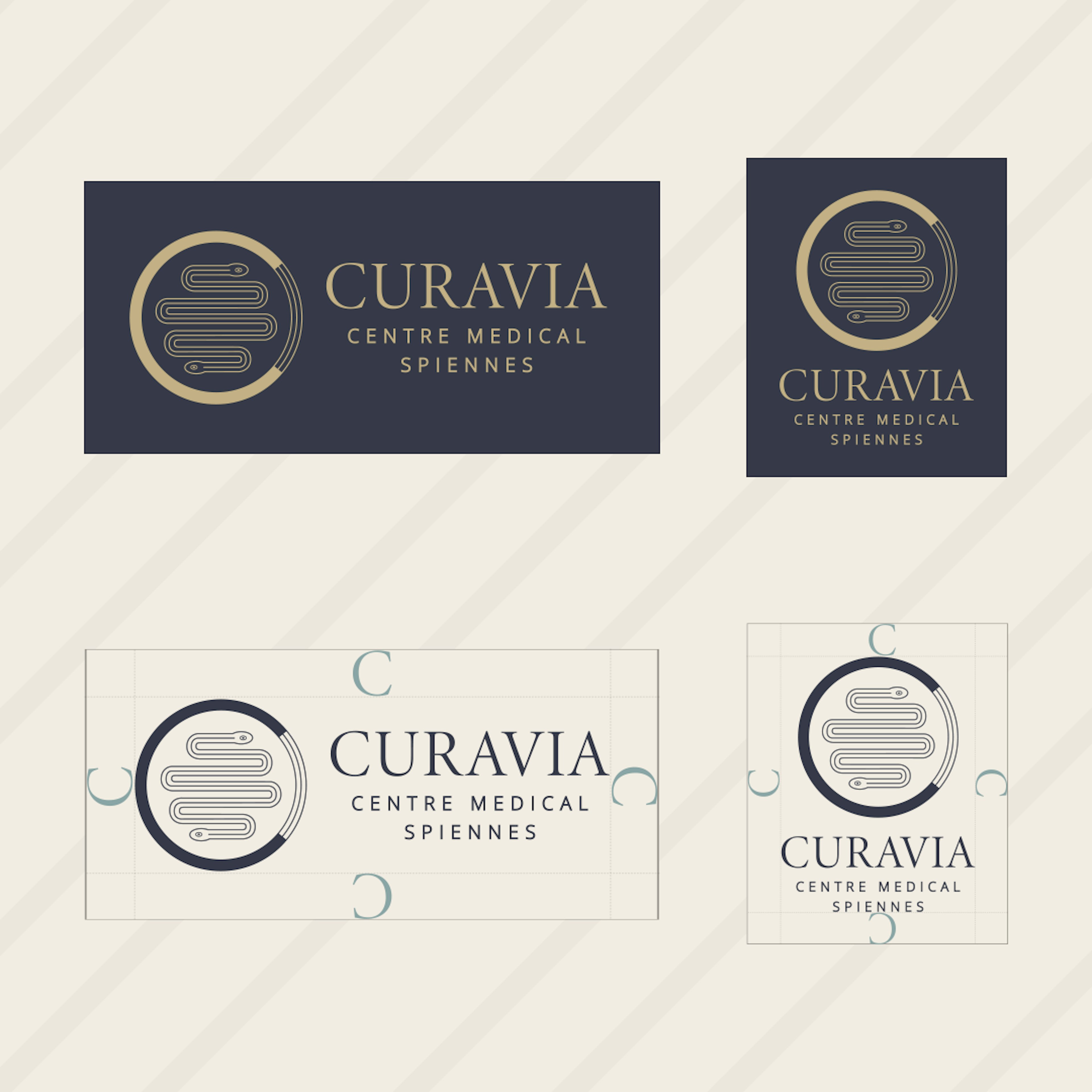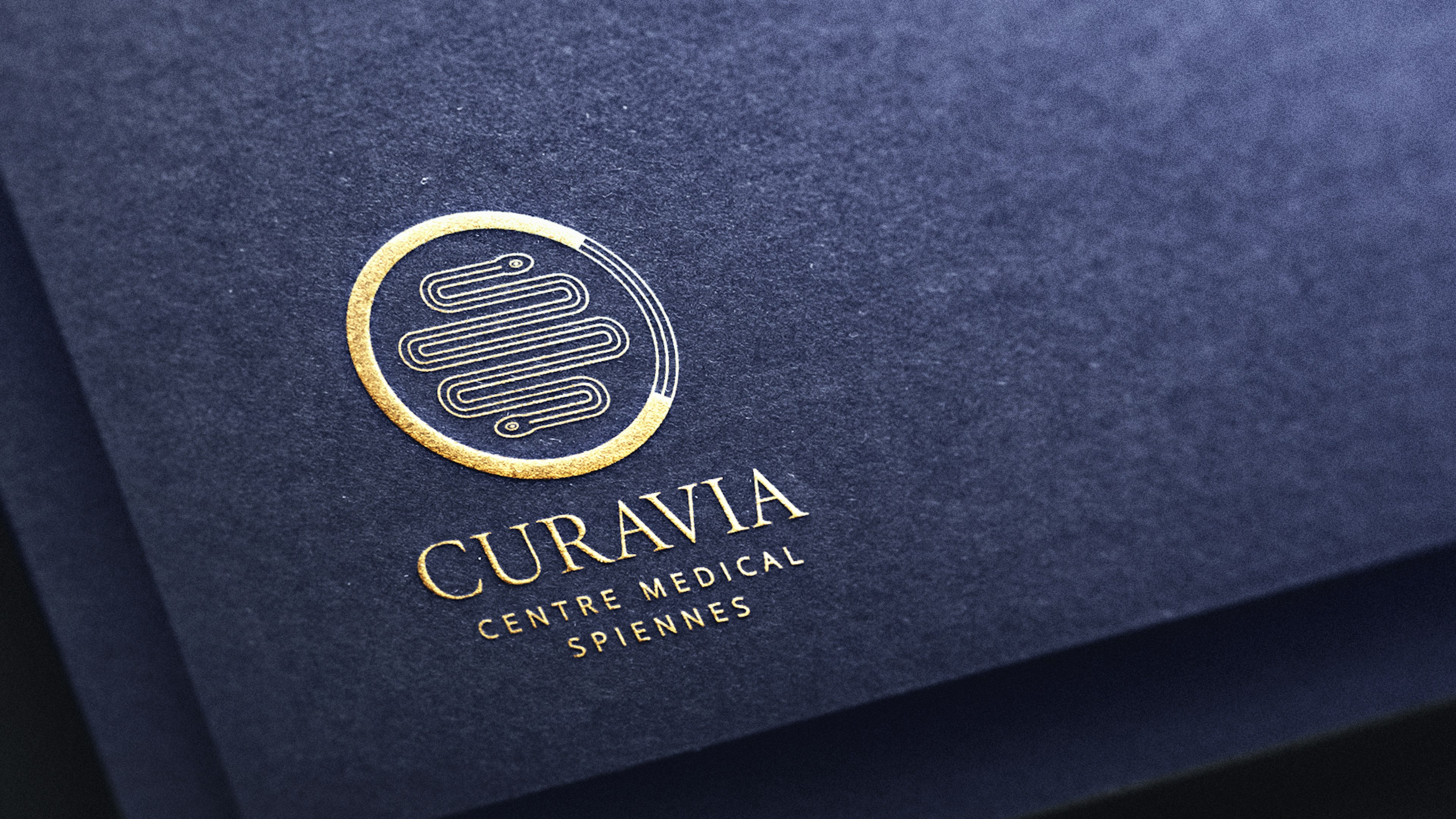 Ce serpent est encerclé par un “C”, initiale de Curavia, complété par un motif graphique que l’on retrouve également dans le corps du serpent, suggérant la prise en charge circulaire et globale.