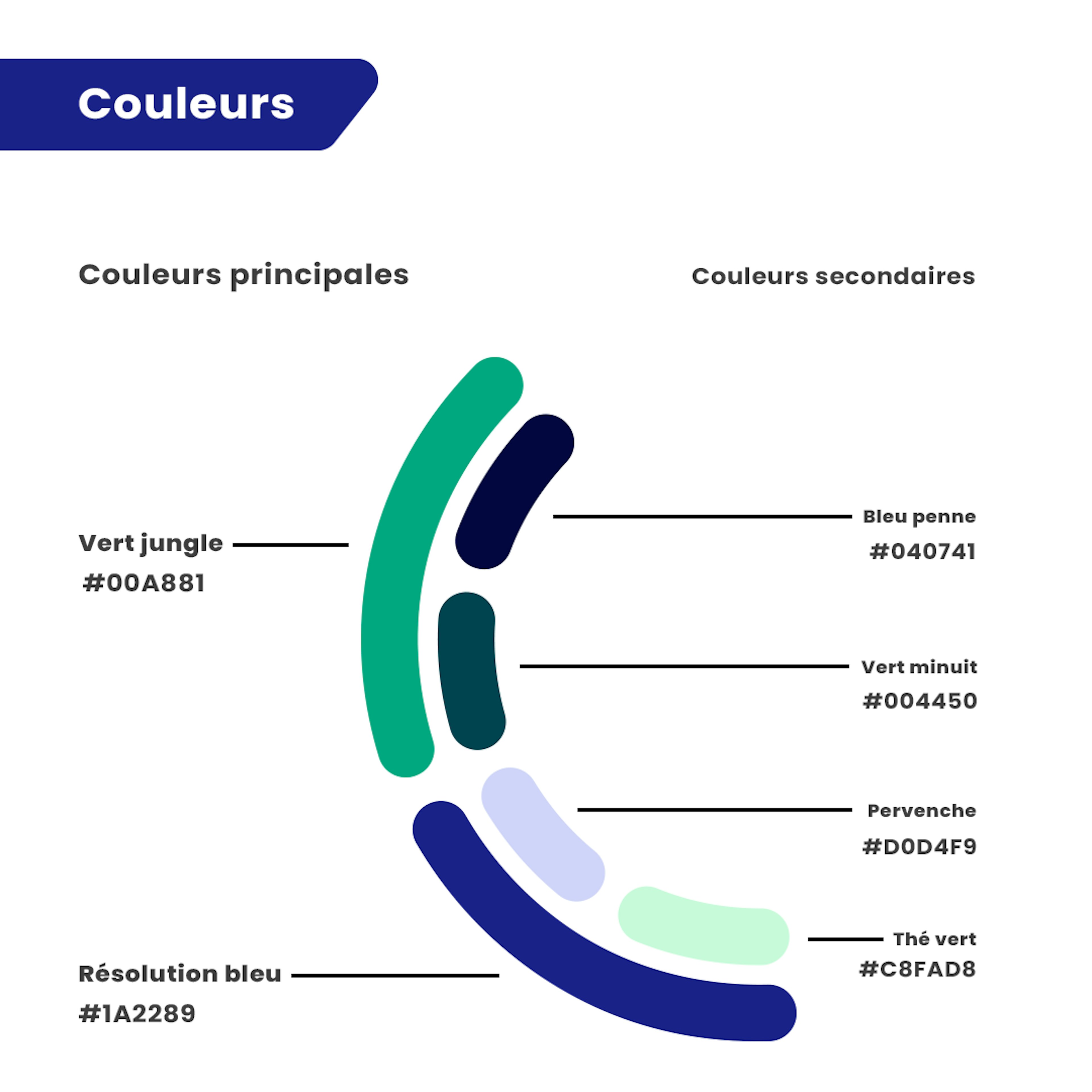 Côté couleurs : un bleu résolution, associé à un vert jungle, pour inspirer à la fois sérieux, confiance, et une touche de fraîcheur contemporaine.