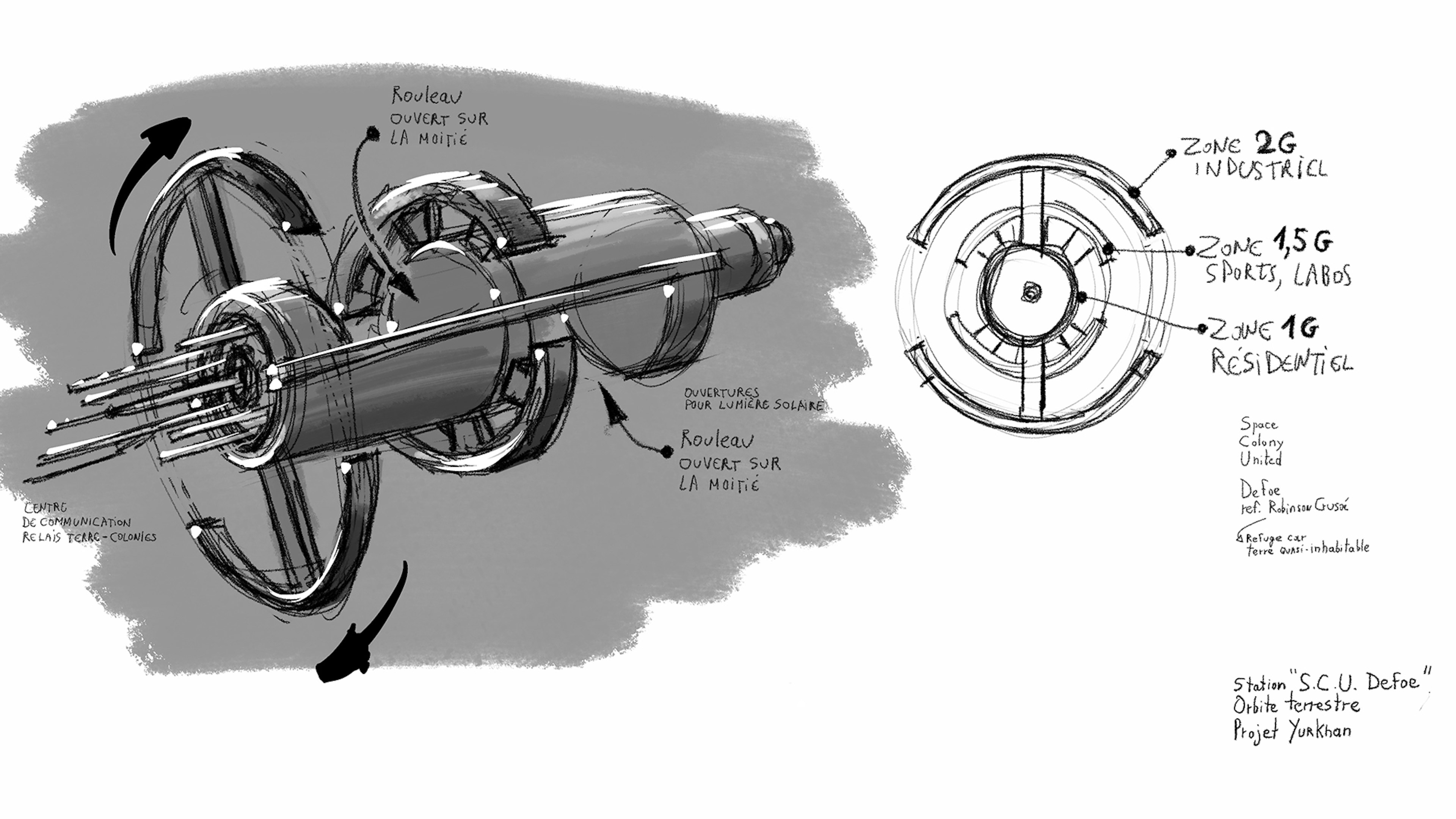 Un défi autant artistique que narratif : chaque recoin de la station devait raconter quelque chose, porter une référence, évoquer un contenu. Une des grosses références évoquées en réunion était l’univers de la série “The Expanse” (Amazon Prime).
